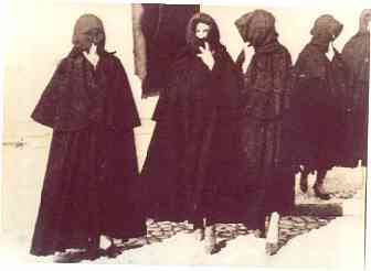 " Ainda há pouco tempo todas (as mulheres de Olhão) usavam cloques e bioco. O capote, muito amplo e atirado com elegância sobre a cabeça, tornava-as impenetráveis.